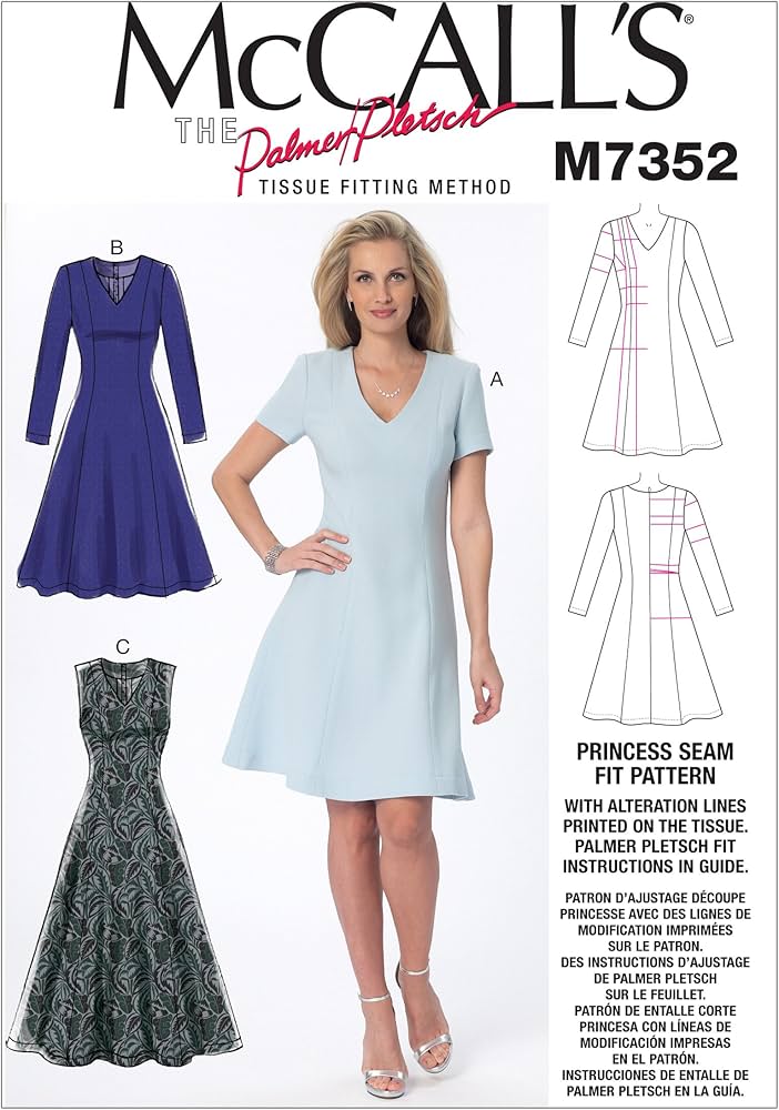 Mccall S Patterns M7352 Women S V Neck Flared Dress Size 8 10 12 14 Amazon De Home Kitchen